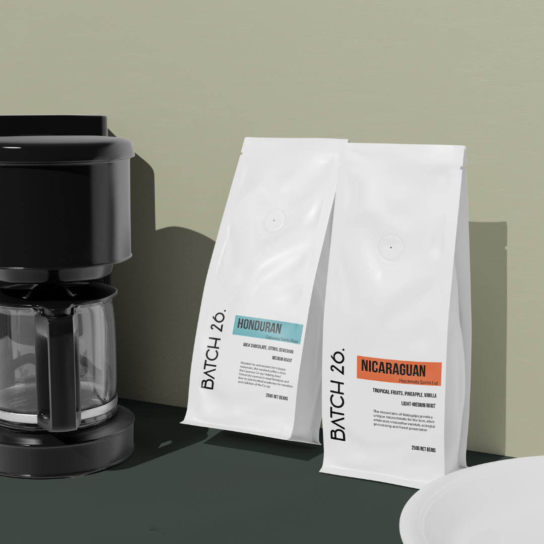 We designed a sleek, minimalistic aesthetic for Batch26 to position it as a premium coffee brand.